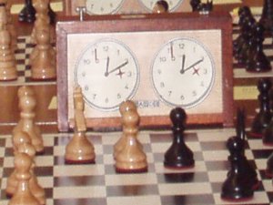 Na ťahu je biely, ide mu čas. Keď urobí ťah, stlačí hodiny a čas pôjde čiernemu. |